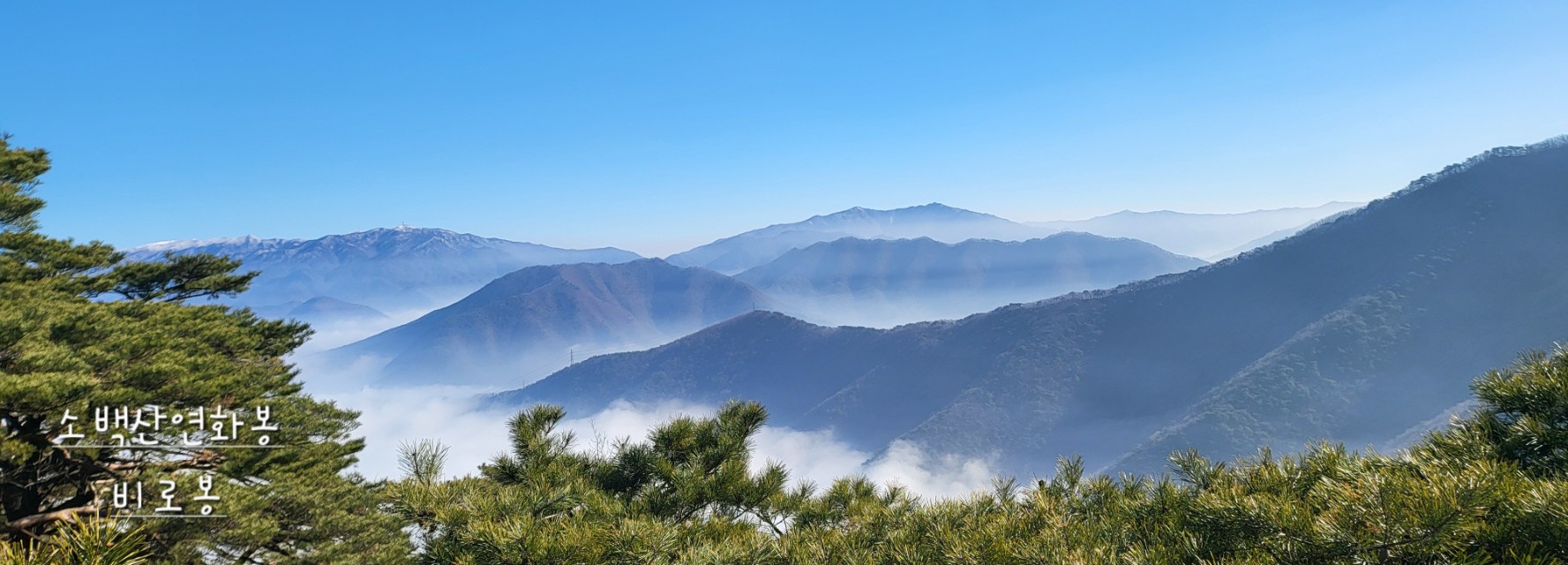 사진에 담긴 풍경처럼 겨울철 맑은 날의 조망과 옅은 운무는 이 코스의 큰 매력 중 하나입니다.