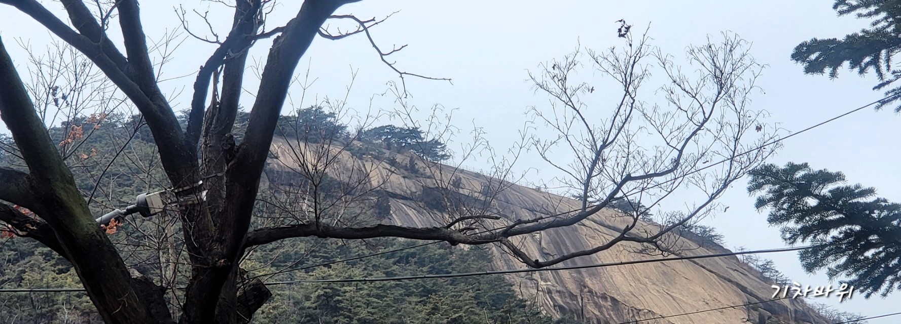 완만한 흙길보다는 묵직한 화강암 바위가 먼저 시선을 사로잡고, 그 위를 소나무들이 꿋꿋하게 붙잡고 있다.