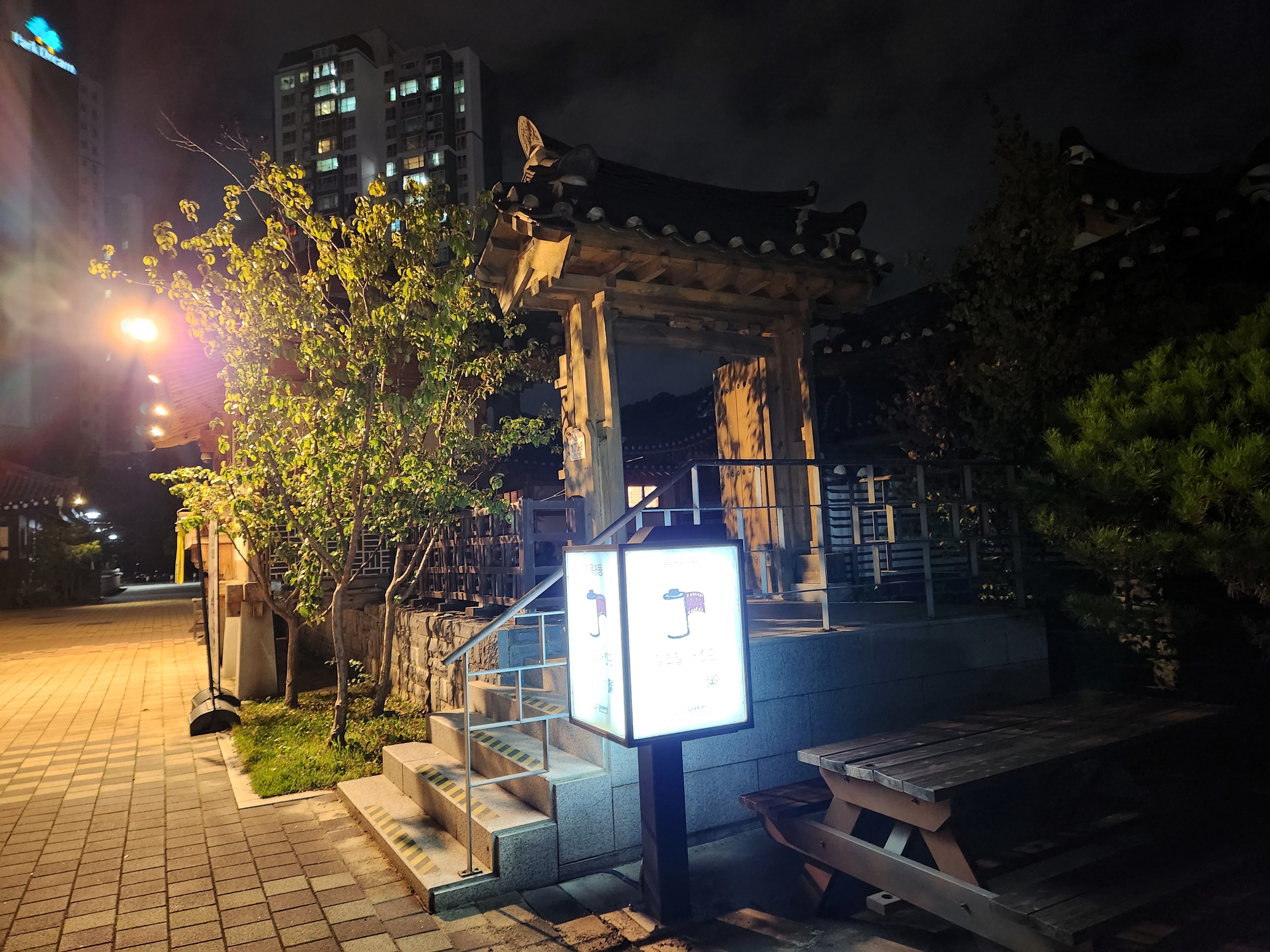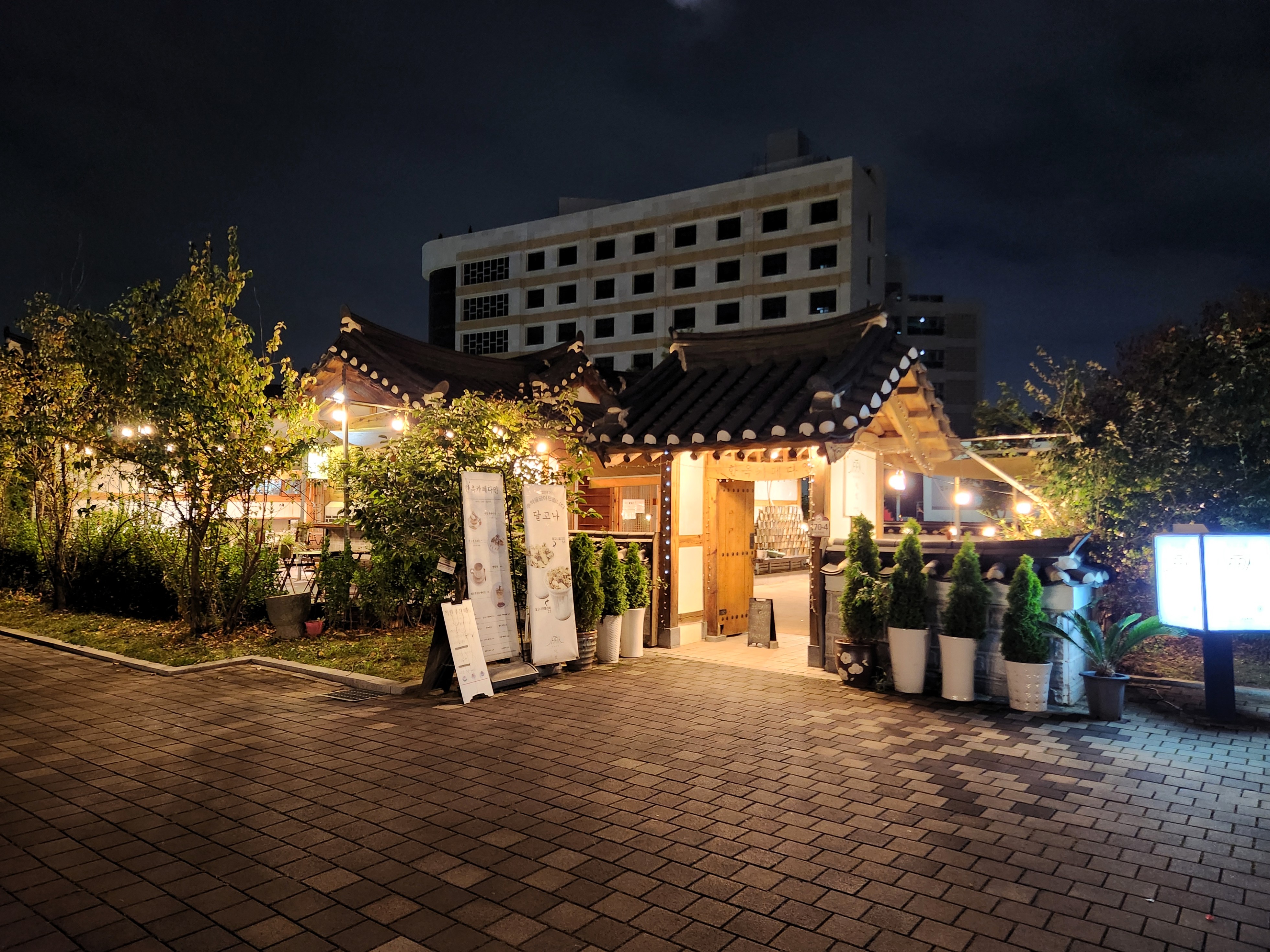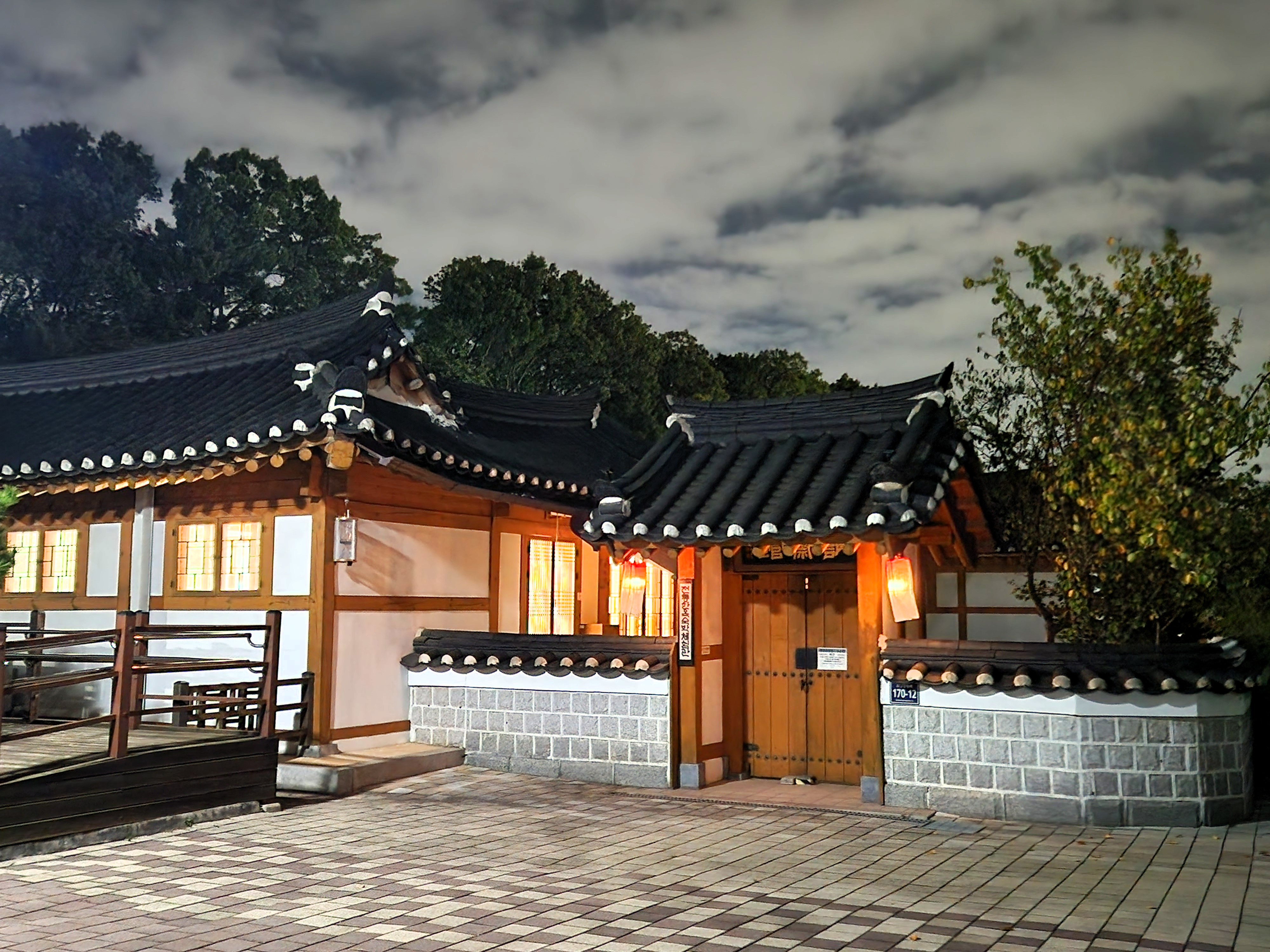 짧은 하루였지만, 전통과 조명이 어우러진 한옥의 밤은