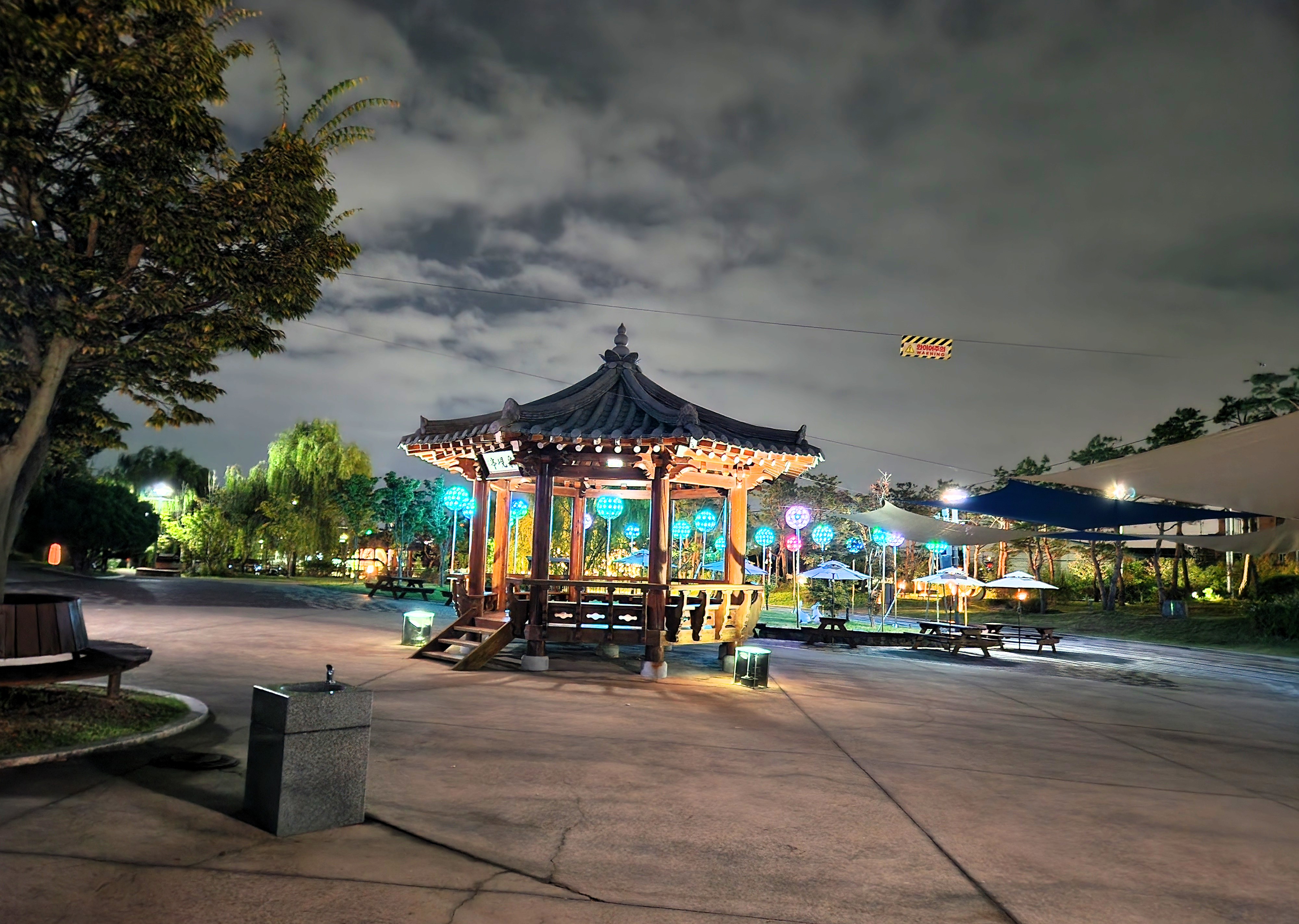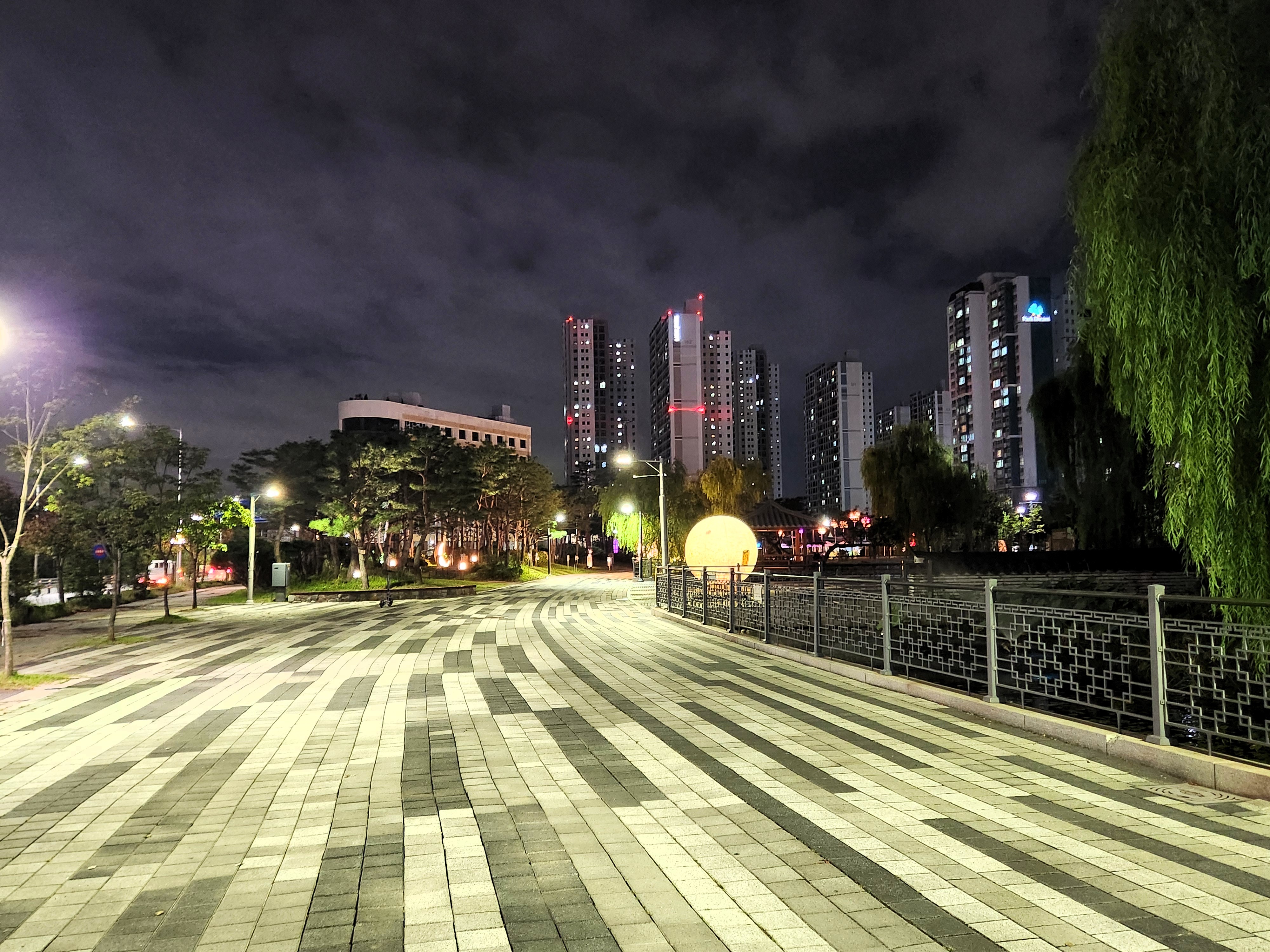 숙소 근처 산책길에는 다양한 조명들이 설치되어 있었어요.